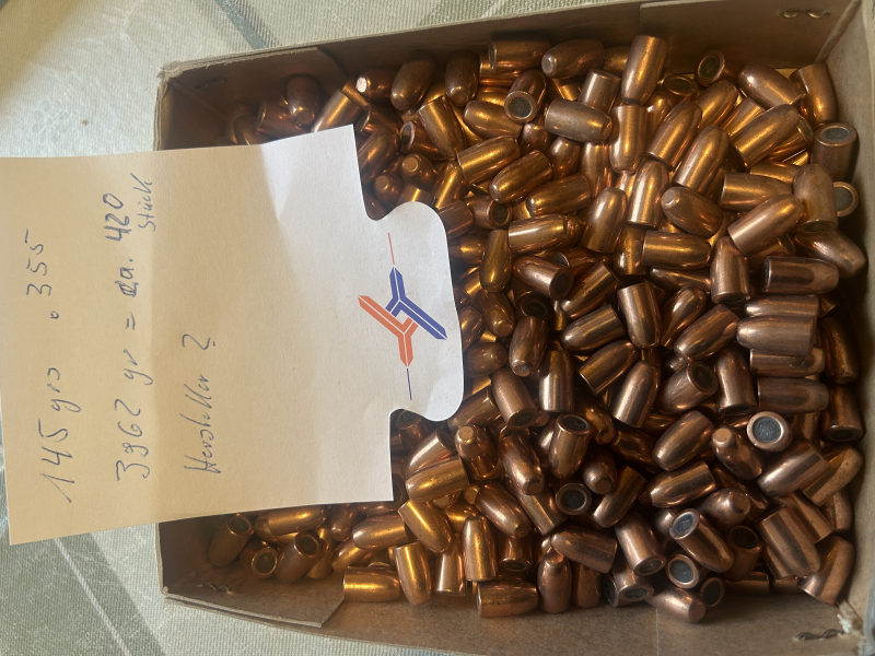 Hersteller unbekannt, 9mm 145grs, .355. Gesamtgewicht 3962gr sind ca. 420Stück. Keine Rücknahme.