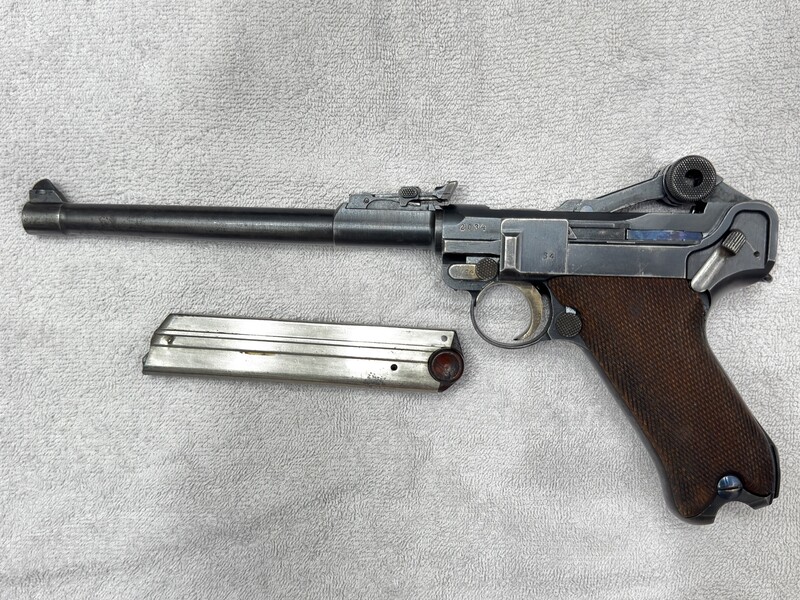 Zum Verkauf steht eine legendäre DWM Ari-Luger 08 1917 (Lange Pistole 08) in einem außergewöhnlichen Erhaltungszustand. Diese Waffe ist nicht nur ein Meilenstein der deutschen Pistolenentwicklung, sondern in dieser Konfiguration ein echtes Highlight für jede anspruchsvolle Sammlung.