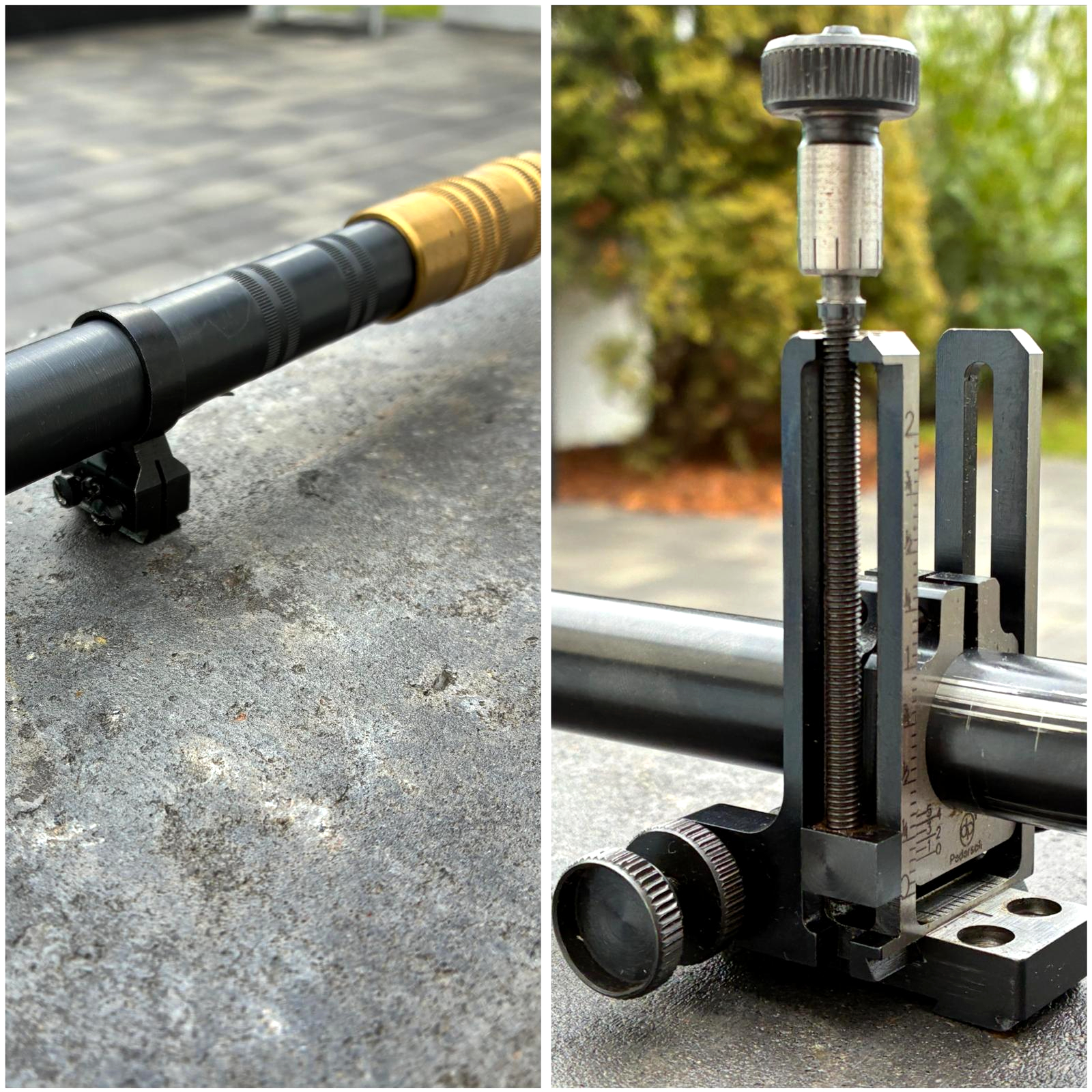 Zur Auktion kommt ein gebrauchtes Longe Range Zielfernrohr von Malcolm 6 x 17 . Gesamtlänge mit Messingschutzkappen : 906 mm . Ohne Kappen : 870 mm . Durch abdrehen der Messingmuffe vorne ist das Zielfernrohr auf 762 mm kürzbar . Schwalbenschwanz vorne ca. 10 mm ( klemmt sich durch Anziehen der beiden Schlitzschrauben in der Schwalbenschwanzführung am Gewehr fest ) . Hinterer Schwalbenschwanz ca. 10 mm . Tubus ca. 20 mm . Gewicht : ca. 960 Gramm . Das Malcolm Glas war auf einer Schwarzpulver Sharps verbaut und hat dem entsprechende Gebrauchsspuren . Durchsicht ist klar und es ist ein dünnes Fadenkreuz zu Sehen . Der Tubus ist brüniert mit Messingbeschlägen , präzise Mikrometerverstellung in der Höhe und Seite möglich . Ideal für das sportliche Schießen geeignet . Montage ist von Pedersoli . Im letzten Bild sind keine "Flusen" im Zielfernrohr zu Sehen , es sind kleine Äste von einem Baum . Rest siehe Bilder .
