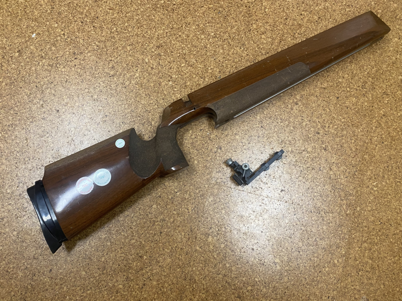 Auf links abgeänderter Schafft und das Diopter für ein Anschütz Matchgewehr, vermutlich für ein Anschütz Match 54
