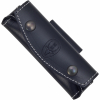 Ein robustes Lederetui mit Druckknopfverschluss, das sowohl quer, als auch längs tragbar ist.