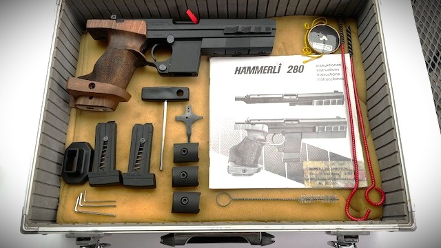2 Magazine + Ladehilfe, 3 Laufgewichte aus Metall, 3 Laufgewichte aus Carbon, 4 Imbußschlüssel, Schlitzschlüssel, Reinigungswerkzeug, Bedienungsanleitung, Trefferbild vom Hersteller, Alukoffer- (Scharniere defekt)