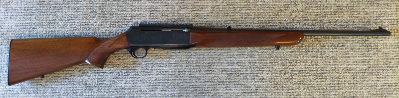 Die Browning Automatic wurde ab 1967 in Belgien produziert. Ab 1977 wurden die BAR dann in Portugal produziert. Die Belgischen BAR, insbesondere der frühen Serien gelten weithin als die besten BAR und die beliebtesten Modelle für Sammler. Aber auch für Jäger hat diese Waffe noch einiges auf dem Kasten. Durch die montierte Picatinnyschiene (Stahl) ist jederzeit schnell ein Zielffernrohr oder ein Rotpunktvisier anzubringen. Die Waffe verfügt aber auch über eine offene Visierung (Aufklappkimme) und ein sehr scharfes Korn, das sich deutlich abzeichnet und trotzdem hohe Präzision erlaubt. Das Kastenmagazin lässt sich aufklappen und fasst vier Patronen. Der Sicherungsknopf ist direkt hinter dem Abzug verbaut. Ein Tragegurt kann an Riemenösen an Hinterschaft und Vorderschaft angebracht werden. Der Systemkasten in Grat 2 und damit mit einfachen Gravuren versehen. Auf der rechten Seite mit einem Rehbockmotiv und auf der linken Seite mit einem Hirschmotiv. Dort sind auch die gröbsten Gebrauchsspuren zu sehen die diese Waffe hat. Sie ist also in einem wirklich guten Zustand, optisch wie technisch.