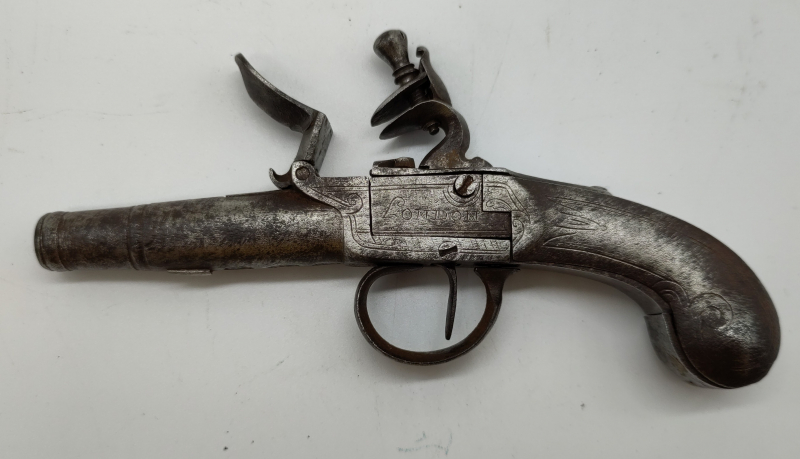 Biete hier eine Ganzmetall-Taschenpistole mit Bocklock von den gesuchten Londoner Büchsenmachern Barbar an.