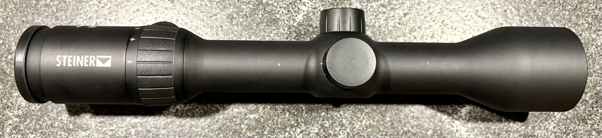 Es war lediglich zweimal im Schießkino und einmal auf einer Drückjagd im Einsatz. Ansonsten wurde es nicht geführt. Entsprechend ist der Zustand technisch wie optisch sehr gut – klare Optik, einwandfreie Funktion und Steiner-typische, robuste Qualität.
