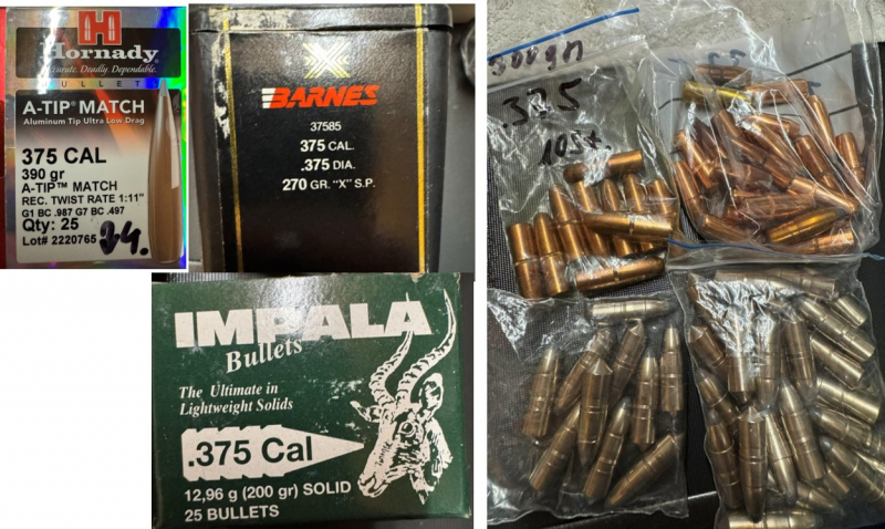 zum Verkauf stehen aus Wiederlader-Nachlass 149 Geschosse .375 zwischen 200 und 390 grain schwer.