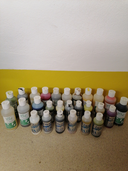 Verkaufe die abgebildeten Life Tone und Polytranspar Airbrush Farben. Es sind fast alle Farben enthalten die zur Tier- und Fischpräparation erforderlich sind. Die Farben haben unterschiedliche Füllstände, sind aber alle zu mindestens 80% gefüllt.