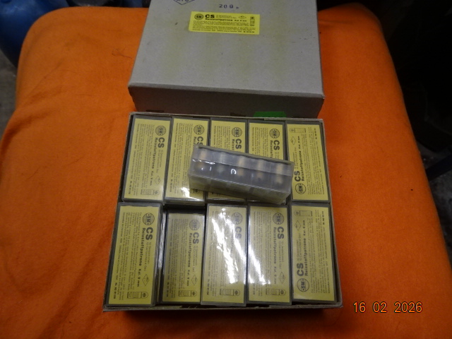 Biete hier eine ganze Kiste CS Gaspatronen kal.9mm RK!Für Revolver!Die Patronen sin schon lange Abgelaufen Sie sind aber in sehr gutem Zustand!Immer Trocken gelagert!!Angebot von Privat,keinerlei Garantie und Rücknahme!!Es sind 20 Schachteln ah 10 Patronen!!