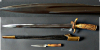Klinge, ohne Hersteller. Lederscheide 49cm, Mund -und Ortblech, mit origin., Befestigung. Ledernaht geschlossen, in originaler Erhaltung. Gesamtl. 64cm. Klinge ca.47 x 3cm. Länge, Beimesser, " Nicker " 19cm.