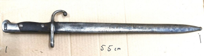 Sie bieten auf ein Bajonett Argentinien Modell 1909 55cm lang v. Weyersberg & Kirschbaum Solingen. Das Bajonett befindet sich in ungereinigten Zustand . Also alters entsprechend. Zustand siehe Fotos. Beschriftungen sind gut lesbar.