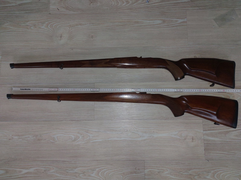 2 gut erhaltene Stutzenschäfte wahrscheinlich für Mauser 98, Gesamtlänge 105cm Lochabstand ca 20 cm