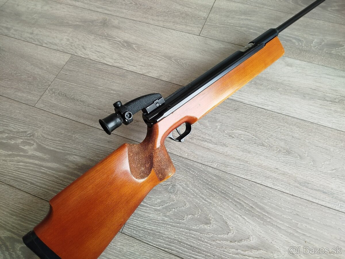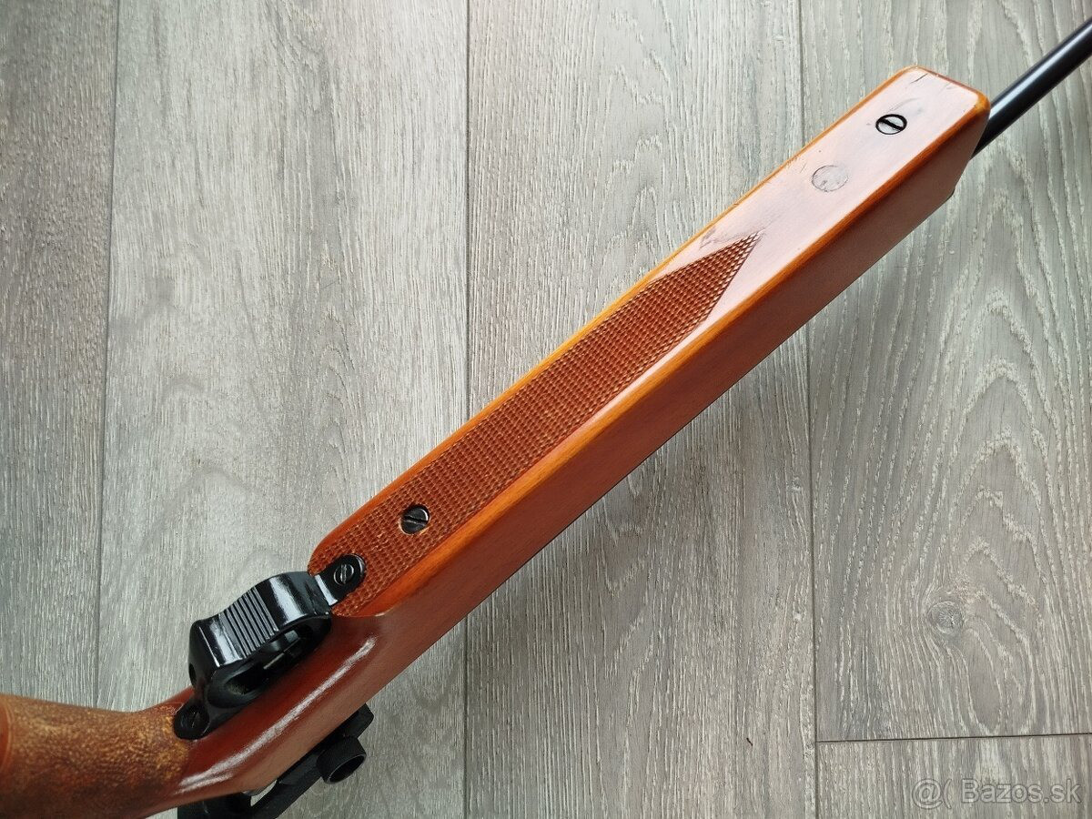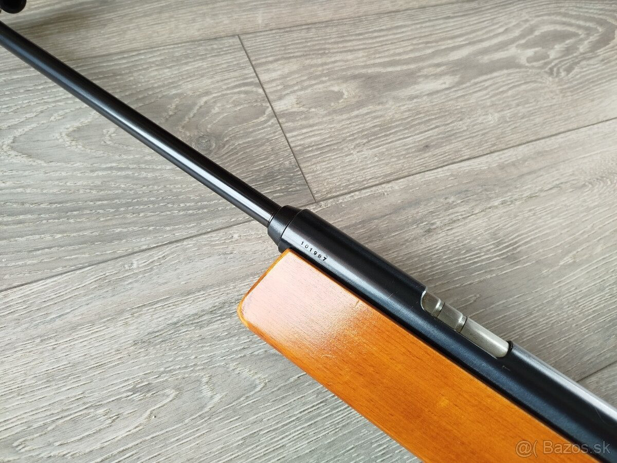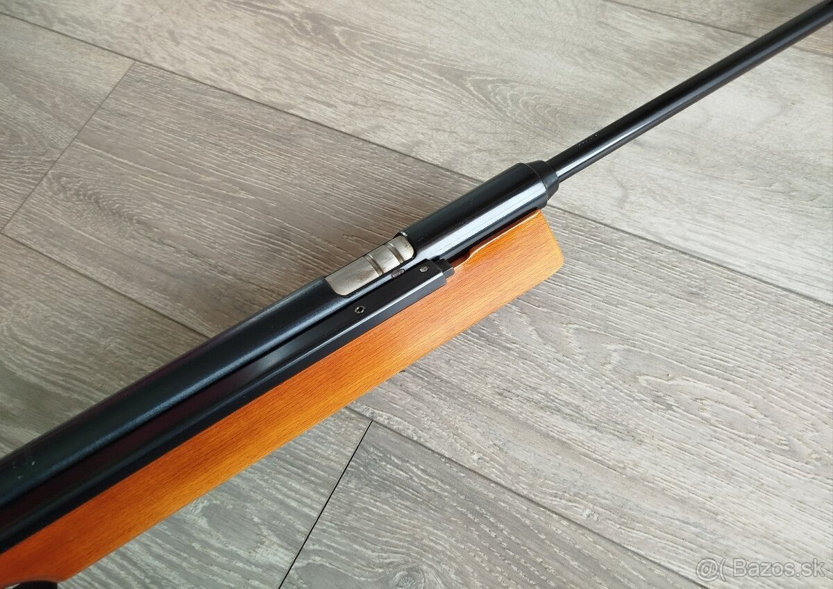 Einzellader Seitenspanner Luftgewehr, mit starrem Lauf, Prellschlag Redukzion, Match Abzug. Kaliber 4.5 mm, Lauf gezogen, Länge 1070 mm, Gewicht ca. 4.5 Kg. Schussleistung 165 m/s.