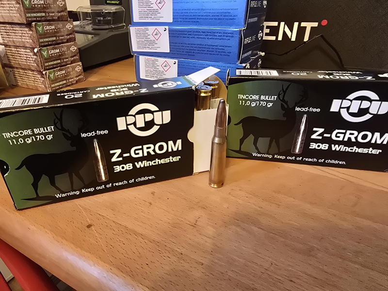 Hier 33 Schuß, 308 Winchester Z-Grom bleifrei 170 grain.