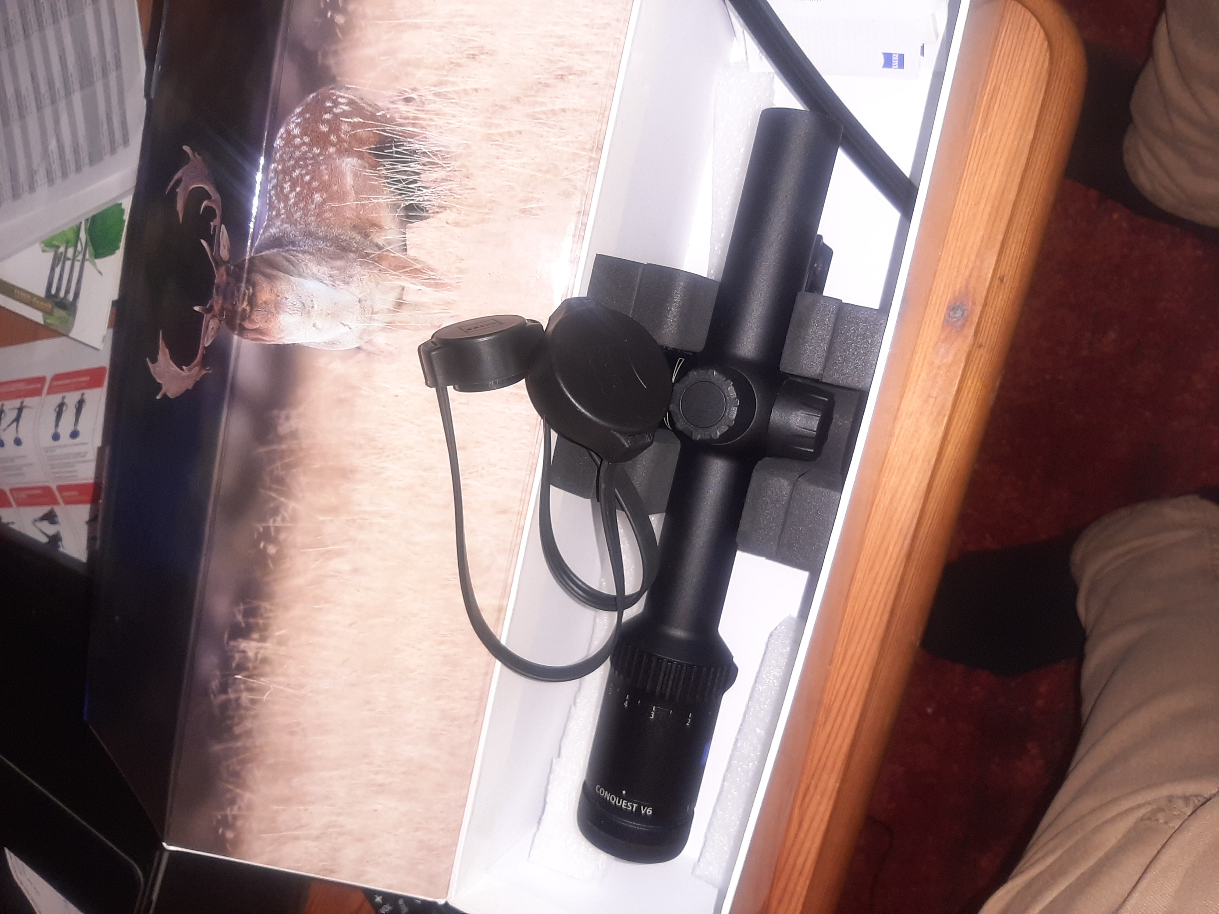 absolut neuwertiges Zeiss V6 1,1 - 6 x 24 mit Schiene. Absehen 60. Tiptop in Ordnung, neuwertig, sowohl von Außen als auch Linsen als auch Bild als auch Mechanik. Warum also verkaufe ich es? Habe günstig ein V8 ergattern können, und das - zumindest für mich - Bessere ist bekanntlich des Guten Feind :o)))