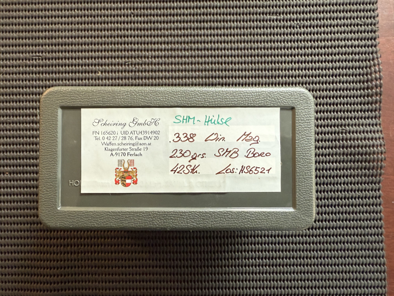 Sie bieten auf 95 Stck Kugelpatronen in .338 WinMag mit dem 230grs SMB Geschoss von Scheiring.