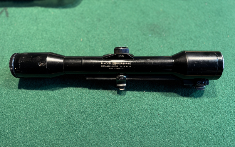 Zum Verkauf steht ein klassisches Zielfernrohr B. NICKEL 4x36 mit Absehen 1.