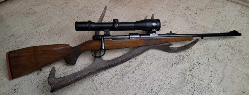 8x57IS,Zeiss Diavari ZM 2,5-10x48MC Leuchtpunkt, Absehen 4 mittels SEM, Büchsenmacherarbeit A.Mathes Friedrichsdorf-Taunus, Gesamtlänge 103cm