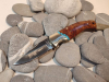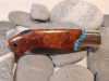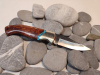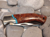 Schöne Griffschalen aus Pakkaholz (?) mit türkisem Schmuckstein (?). Die feststellbare Klinge besteht aus rostfreien ATS 34 Stahl.