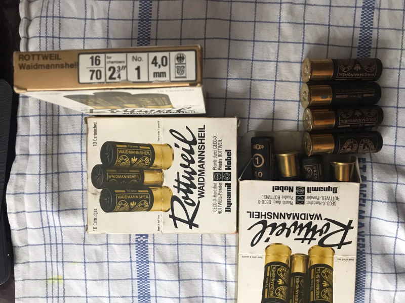 Von Privat aus einem Nachlass an EWB : 30 Schrotpatronen von Rottweil Waidmannsheil in 4,0 mm - leichte Oxidationsspuren am Hülsenboden , siehe Bild - Fabrikpatronen - Von Privat, daher keine Garantie oder Rücknahme - Versandpauschale 6 Euro - Verkauf nach Österreich nach Rücksprache möglich -