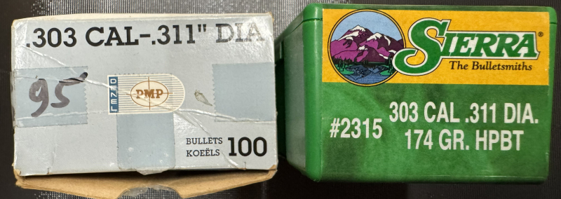 zum Verkauf stehen aus Wiederlader-Nachlass 195 Geschosse .303 .311, 174 grain schwer. 100 x Sierra #2315 ist originalverpackt 95 x Denel pmp