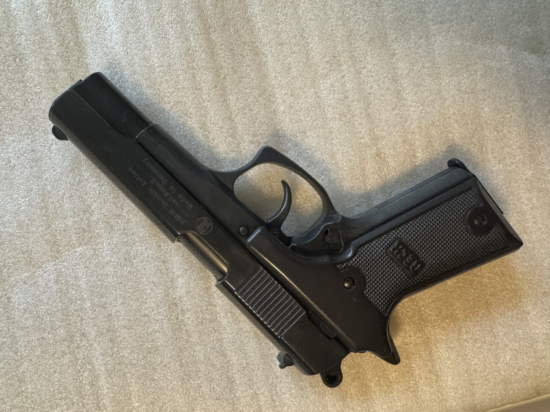 Es handelt sich um eine in Deutschland gefertigte Schreckschuss-/Gas-Signalpistole mit PTB-Zulassung. Das Modell überzeugt durch seine solide Verarbeitung und klassische Bauweise.