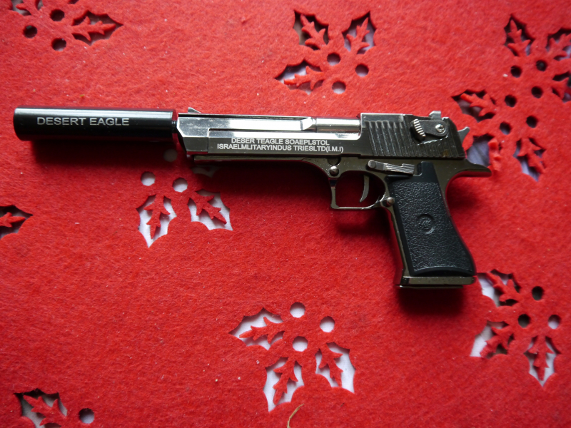 Eine Desert Eagle Modell Waffe Schwarz mit einen Schalldämpfer .