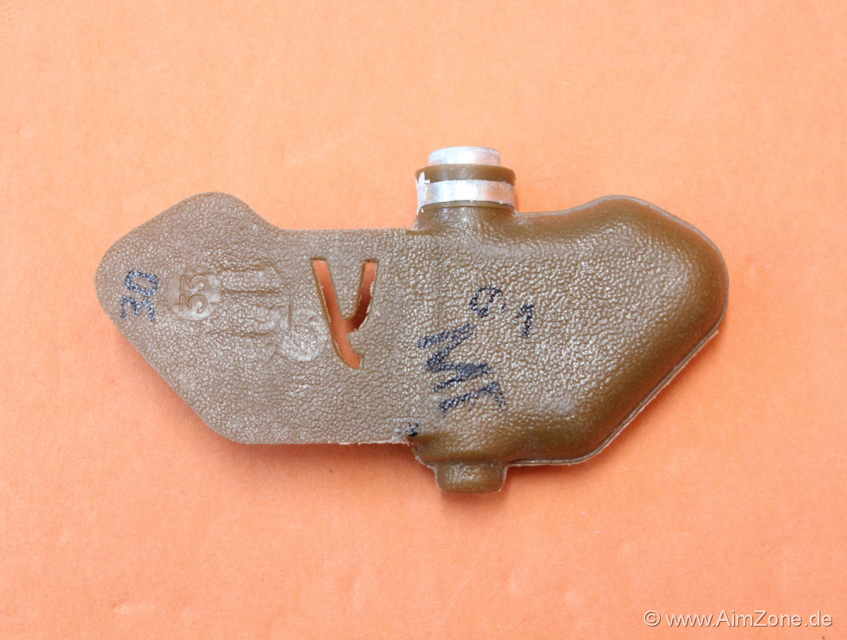 Der Minenkörper besteht aus grünem Kunststoff und das Zündersatzstück aus Aluminium. Der Flügel kennzeichnet die Mine durch das ausgestanzte kyrillische "У" für УЧЕБНЫЙ) als Übungs- und Ausbildungsmodell ohne explosionsgefährliche Bestandteile. Guter Erhaltungszustand aus einer Ausbildungs- und Lehrsammlung. Abmessungen: ca. 115x64x20mm (Dekorations-/Sammlerartikel).