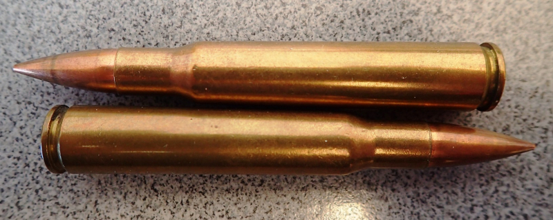 2 Original-Patronen (nicht schussfähig) zur Demonstration oder Ausbildung in Kal. .30-06 Springfield.