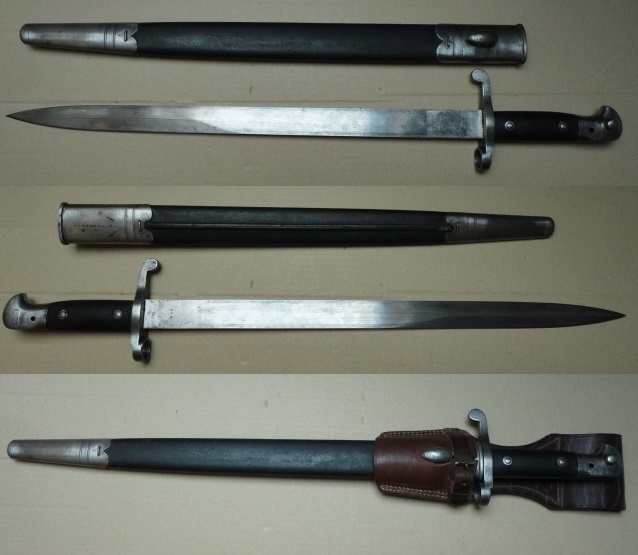 Englisches Bajonett für das Martini-Henry-Gewehr in schönem Zustand, müsste Modell P/1887 Mark III sein, Klingenlänge: ca. 46,5 cm, Gesamtlänge (ohne Scheide und Koppelschuh gemessen): ca. 60 cm; Alters- und Gebrauchsspuren einer alten Militärwaffe; Alles andere und Zustand siehe Bilder! Fragen bitte rechtzeitig vor Auktionsende stellen. Versandkosten EU: 18 Euro. Privatverkauf unter Ausschluss der Sachmängelhaftung, keine Garantie, keine Rücknahme. Bieten Sie nur, wenn Sie damit einverstanden sind!