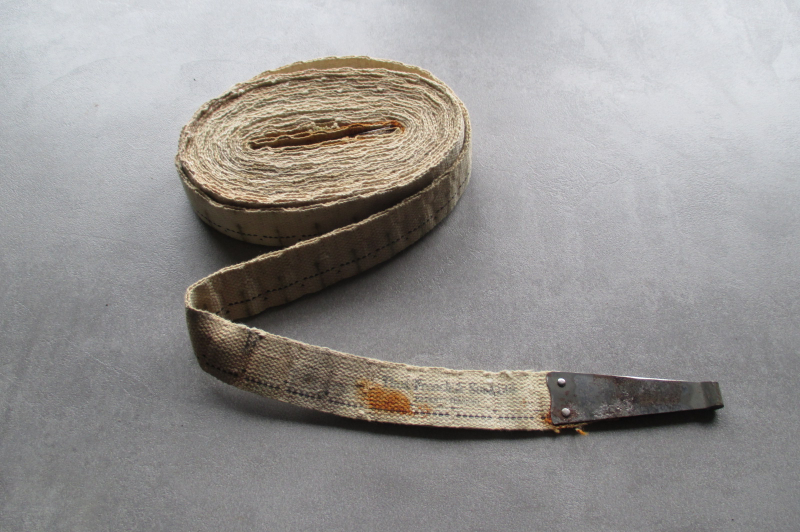 Biete hier aus Sammlungsauflösung einen schönen und originalen MG-Gurt aus Stoff für das US Maschinengewehr Browning M1919 A4 aus dem 2.WK an. Es handelt sich um einen Webgurt für 250 Schuss Cal. 30-06, der in einer Munitionskiste aus Blech eingelegt war. Stempel von 1942. Zustand gebraucht, leicht fleckig und etwas rostig an den Einführstücken, siehe Fotos.