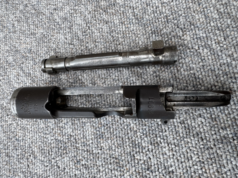 Zum Verkauf steht eine Systemhülse und Kammer für Mauser System 98 aus originaler Oberndorfer Fertigung für Türkei,Model 1903. Es handelt sich um ein sogenanntes Intermediate System,das heisst dass die Kammer 5mm kürzer ist als das Standart K98 System. Sehr geeignet für den Bau von Büchsen im Kaliber 7x57, 8x57 oder. 308 und ähnliche. Dieses System ist baugleich mit dem späteren Peru 1909. Der Hülsenkopf ist „ large ring“, 36 mm und das Laufgewinde das kleinere wie das beim Schwedenmauser verwendete. Das System kann daher auf „small Ring“, 33 mm Hülsenkopf heruntergefräst werden um eine schöne schlanke Waffe zu bauen.
