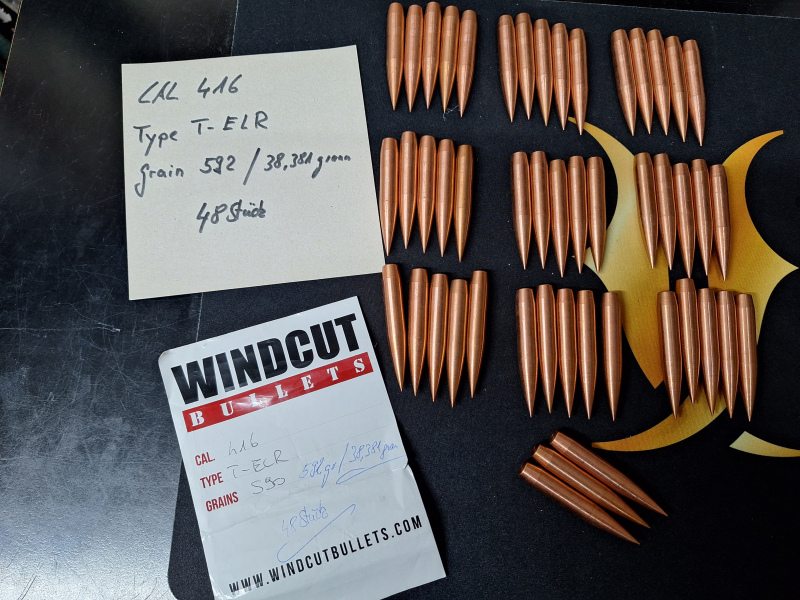 Verkaufe Hier WINDCUT Bullets CAl. 416 T-ELR 590Grains 48 Stück.