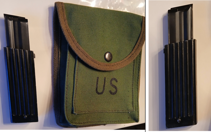 Ein Magazin für 15 Stck. Patronen Kal.: .22lr, für Erma M1 halbautomatische Büchse, siehe Bilder. Dazu gibt es eine Gürteltasche, siehe Bilder. Verkauft wird aufgrund von Überbestand.