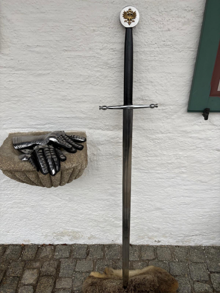 Zum Verkauf steht ein imposantes spätmittelalterliches Langschwert in der Form eines Oakeshott Typ XVIIIb.