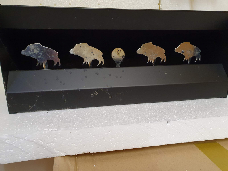 geeignet für Luftgewehr/Luftpistole. Die Wildschweine werden durch Treffer umgeworfen, durch Treffer in der Mitte auf die runde Scheibe stellen sich die Wildschweine wieder auf. Maße: ca. 49 x 20,5 x 22 cm Es handelt sich hierbei um einen Privatverkauf. Die Auktion erfolgt daher unter Ausschluß jeglicher Gewährleistung, Garantie und Rücknahme. Der Bieter erklärt sich damit einverstanden und erkennt dies mit seinem Gebot an! evtl. Versandkosten ins Auslang ändern sich!