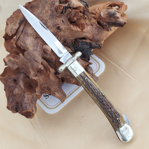 Verkaufe aus Sammlung: seltenes STILETTO MEDICI der Fa. PUMA, eine frühe Fertigung, ca. 60-er Jahre, Gesamtlänge 18,5 cm, Klingenlänge 7,7 cm, gebrauchter guter Zustand (diente als Brieföffner). Ein Stück aus der berühmten Sammlerkollektion von PUMA - STILETTO MEDICI, Preise liegen ca. bei 300-600 EUR u. mehr. Das teuerste STILETTO MEDICI mit Klingengravur, Goldeinlage u. Mammutgriffschalen kostet 2450 EUR u. ist nur