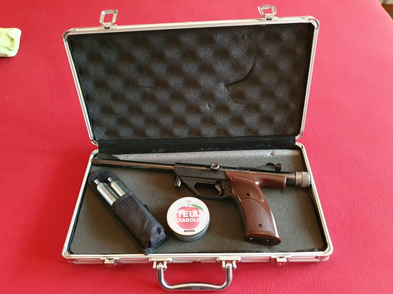 Ser.Nr. 18438, wenig gechossen, schöner gepflegter Zustand, mit dabei 1x Dose Diabolos & 2x CO2 Kartuschen im Etui.