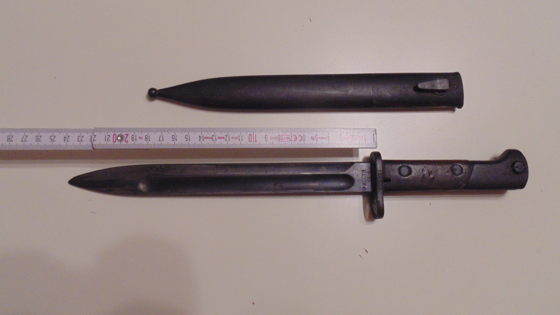 Zum verkauf steht ein Bajonett WZ 28 oder 29 F.B.Radom Seriennummer 1141 K , D in sechseck mit Scheide.Länge inklusive Scheide 40,5 cm. Drücker funktioniert. Da ich keine Ahnung von Bajonetten, Säbeln und Degen habe will ich keine falschen Angaben machen.