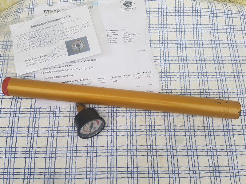 Gelegenheit, 2025 neu "Getüvte" Stahlkartusche für Steyr LG 1 / LG10 - 820g plus Manometer ! Leider kann ich sie nicht bei der Steyr 110 nutzen , deshalb wäre auch Tausch möglich.Versand EU 15,-