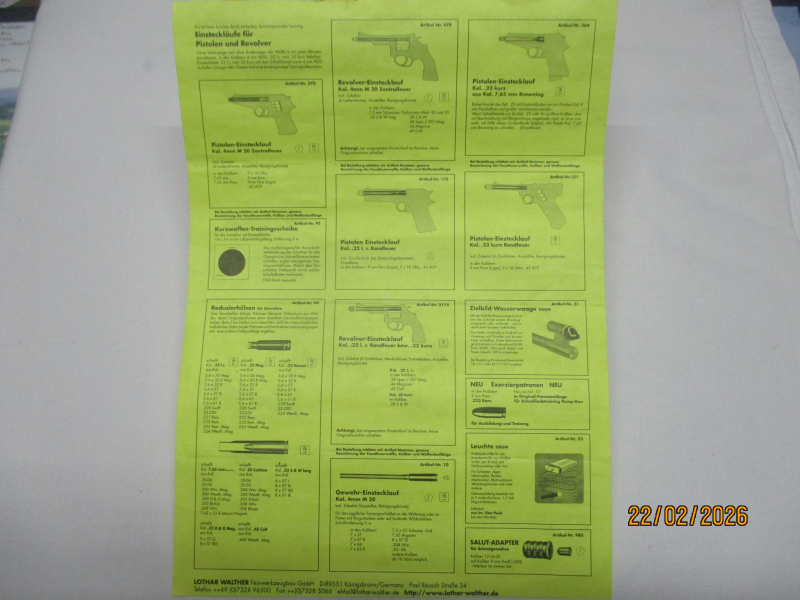 1 x prospektblatt von lothar walther einstecksystemen, einsteckläufe, reduzierpatronen usw, - für sammler o.ä.