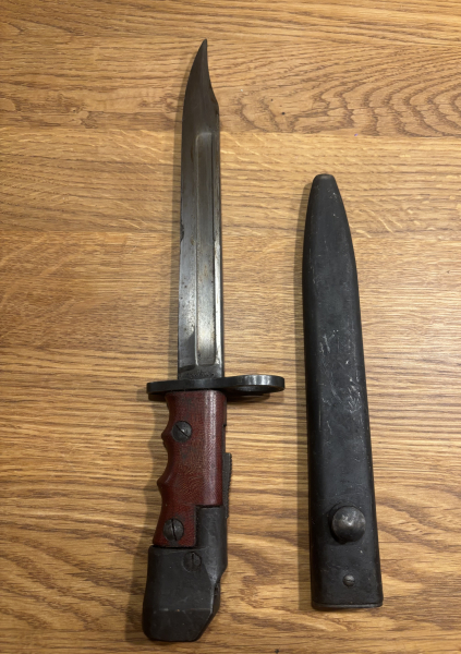 Ich verkaufe hier aus meinem Bestand / Sammlung ein gebrauchtes British Bajonet. Die Klingenlänge ist 20 cm , Gesamtlänge 32 cm . Das Bajonett ist mit 7 M.K.I/L gestempelt. Der Zustand ist den Bildern zu entnehmen. Geliefert wird, wie auf den Fotos zu sehen.