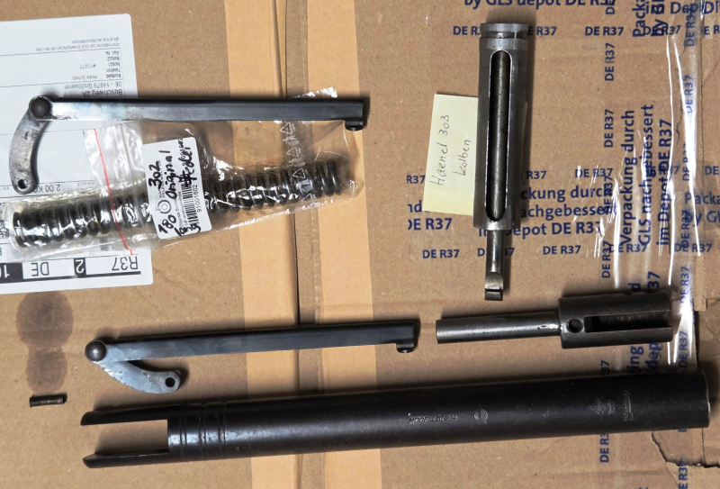 -302 (Feder l=180mm, Spannschiene, Gelenk) und einen Kolben einer 303.