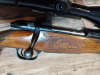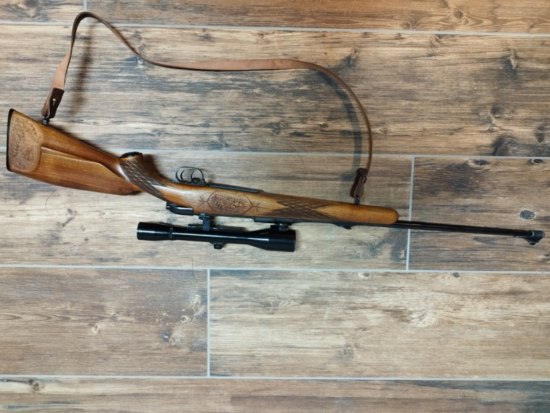 Repetierer Mauser, Modell 2000 im Kaliber 6,5x57. Schaftverschneidungen s. Bilder. Kann mit oder ohne Stecher geschossen werden. Brünnierung ohne Abrieb, Abstand zum Abzug 35 cm. Zielferrohr Hubertus mit Absehen 1 in 6x42.