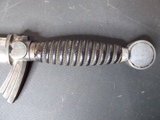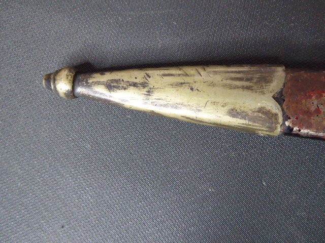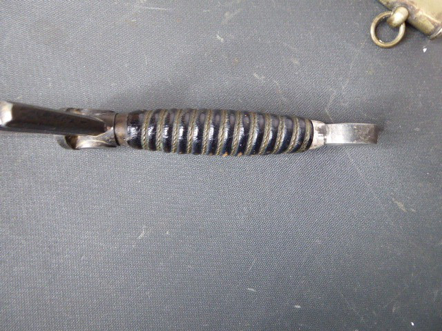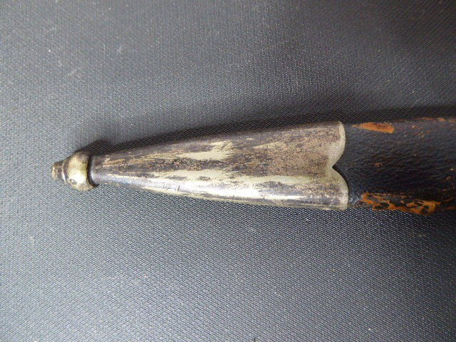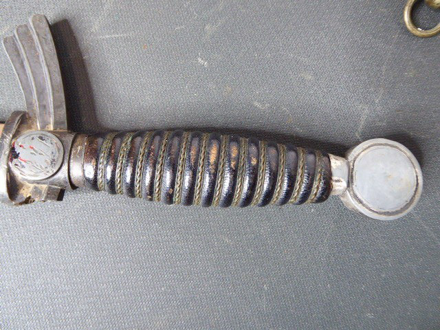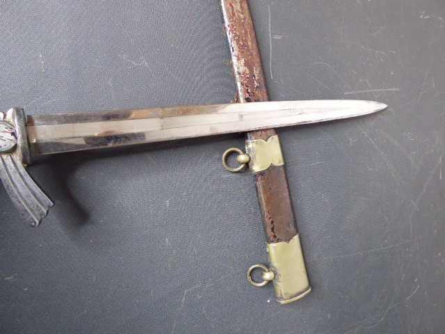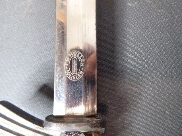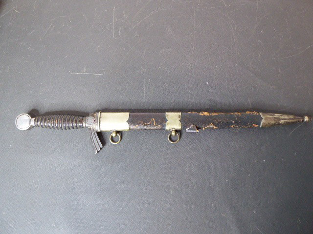 Aus meiner Sammlung gebe ich, ein originalen Entnazifizierten defekten Borddolch Scheide Neusilberbeschläge als Ersatzteilspender ab. eine Seite der Parierung ist abgebrochen. Klinge im Guten Zustand mit Hersteller F.W.HÖLLER SOLINGEN. Originale Belederung der Scheide löst sich schon ab, mit viele Fehlstellen. alle Schrauben sind vorhanden. Aus dem Teil kann man sicherlich noch etwas machen. Alles andere entnehmen Sie Bitte den Fotos. Kann zu jederzeit bei mir besichtigt werden. Privatauktion keine Rücknahme und Garantie.