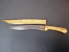 Aus meiner Sammlung gebe ich, ein älteren sehr großen Asiatisch? Dolch Damast Klinge mit Vergoldeten Griff und Scheide ab. Kenner werden es sicherlich wissen wo das Teil getragen wurde. Sehr Großer Griff mit Floralem Ornamentierten stark Vergoldeten Blech/ Silber? nicht geprüft, ummantelt, noch beidseitig jeweils beidseitig 3 gefaste rote Steine. Knauf mit einem großen gefasten blauen Stein verziert. Breite Einschneidige Stabile Damast Klinge, am Griff mit ornamentierten Silberblech gefast. Scheide Holz mit Floralem Ornamentierten stark Vergoldeten Silberblech ? nicht geprüft ummantelt, beidseitig noch je 4 gefasten roten Steinen aufgesetzt, es fehlt aber einer. Das Teil ist im Sammelwürdigen Zustand. Alles andere entnehmen Sie Bitte den Fotos. Gesamtlänge: 57 cm, ohne Scheide: 53 cm, Klingenlänge: 34 cm, Klingenbreite: 4,5 cm. Kann zu jederzeit bei mir besichtigt werden. Privatauktion keine Rücknahme und Garantie.