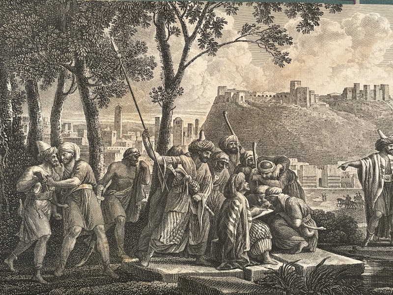 schöner sehr alter Kupferstich gut erhaltener Belagerung einer Festung durch die Osmanen