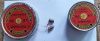Wie auf den Bildern erichtlich sind die Blechdosen am Rand abgegriffen. Es sind zusätzlich 10 Platzpatronen 6 mm dabei.