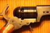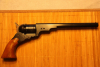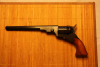 Verkaufe aus Sammlung eine Replika des ersten Vorderladerrevolvers Colt Paterson im Kaliber .36 BP, Hersteller Pietta Italien, Beschuss 1979. Waffe ungeschossen, nicht bespielt, Lauf blank, Pistons leicht beweglich, leichte Lagerspuren, keine Korrosion. Mechanik und Laufkeil geht sehr stramm, volle Funktionalität (Trommel rastet bei jeder Kammer sauber ein), Abzug klappt beim Spannen des Hahns aus. Keine vermurksten Schrauben, siehe Bilder