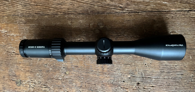 Zum Verkauf kommt ein Zielfernrohr der Marke Vector Optics Taurus 3-18x 50 SCFF-11 mit Absehen MPX1 (geätzt) in erster Bildebene (vergrößert mit) mit feinem Leuchtpunkt und einstellbarem Paralaxenausgleich. Es ist ein sehr solides Zielfernrohr, das einen wertigen, robusten Eindruck macht. Tubus-Durchmesser ist 30mm. Die Linsen sind klar und ohne sichtbare Kratzer, das Absehen ist scharf. Die Verstellungen Zoom/Dioptirien am Okular sind saugend.