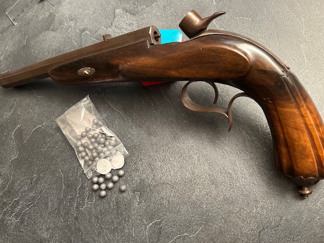 Verkaufe Scheiben-bzw Zimmerpistole - Original keine Replika. Kaliber vermutlich 290 bzw 7,5 mm.